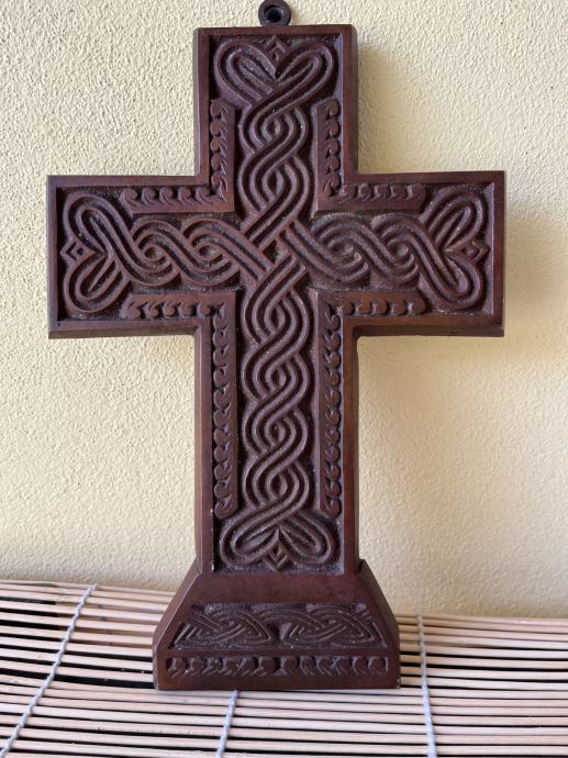 Teški masivni križ- 1200 g, visina- 23 cm, širina u najširem djelu- 16 cm. Vješa se na zid. Dajem ga ispod svake cijene.
