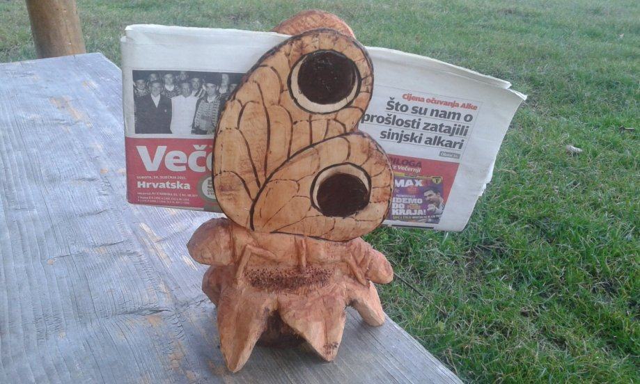 Drvena skulptura leptira izrađena od vrbe, koja može služiti kao držač novina (utor između krila).
