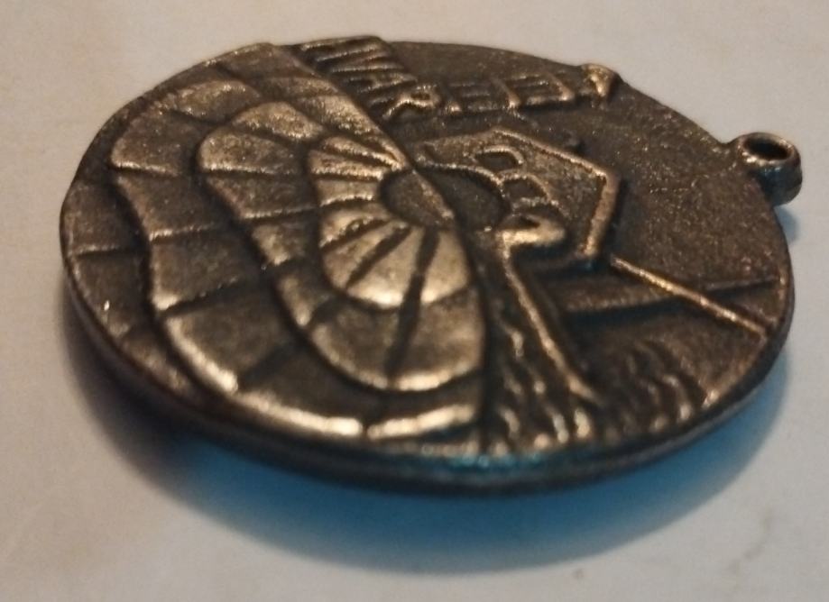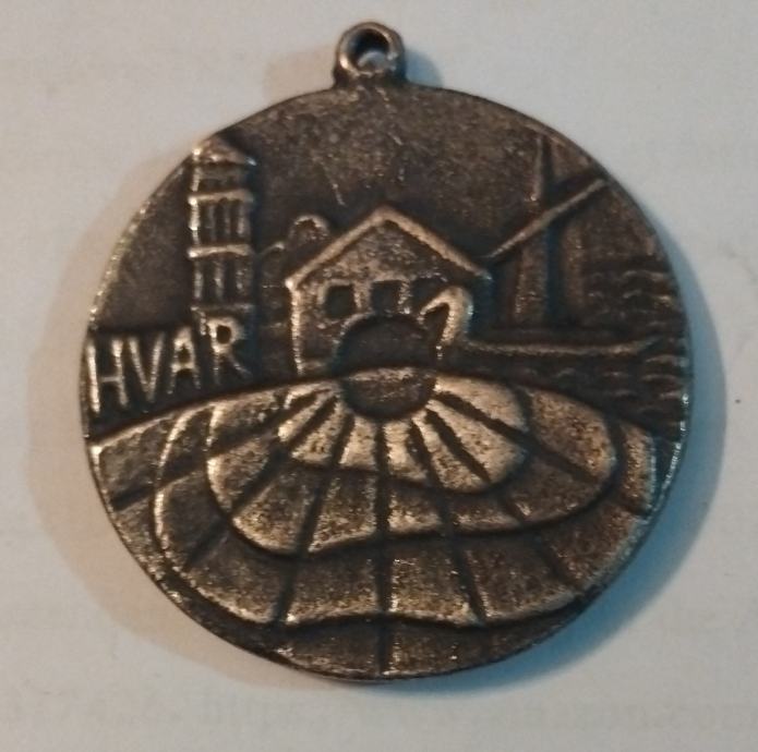 Umjetnički suvenir - nakit, 1972.g., Hvar, lijevana bronca, dvostrani reljef, dimenzije cca 5x4cm, 50g.