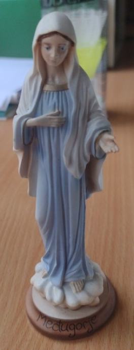 iz Međugorja mali kipić bose Marije u bijelom s pruženom lijevom rukom