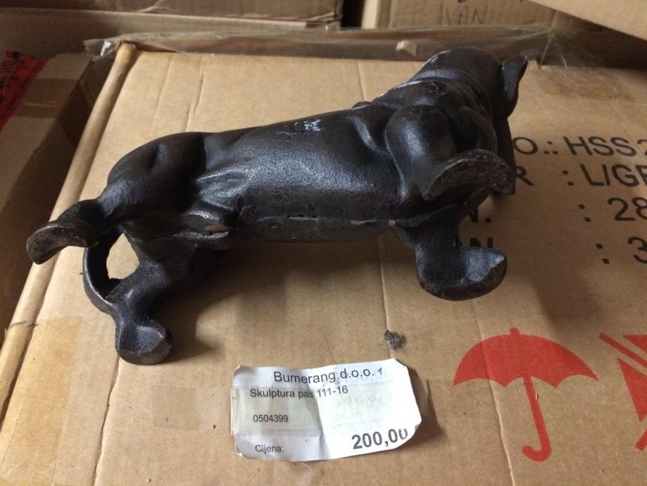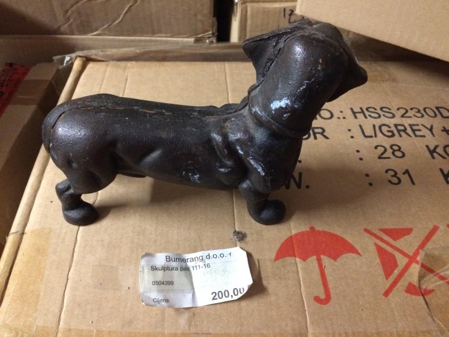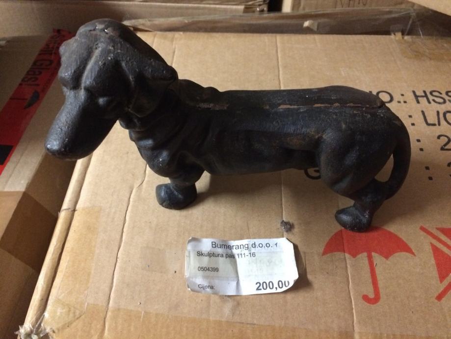 Prodajem metalnu skulpturu psa jazavčara, izgled i stanje kao na priložnim fotografijama.