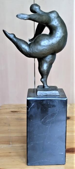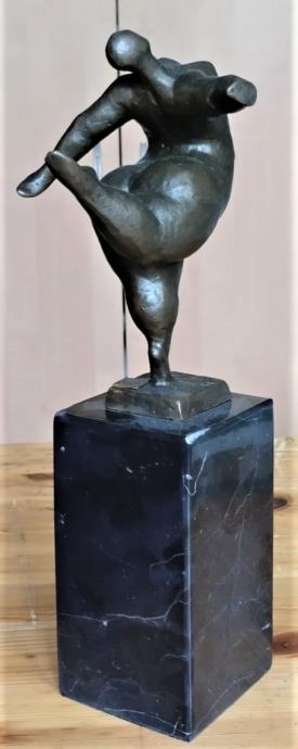 Ova moderna umjetnička skulptura prikazuje apstraktnu golu plesačicu koja balansira na jednoj nozi. Skulpturu je izradio poznati kipar Milo. Atraktivna bronca izrađena je od 100% najfinije bronce i postavljena na čvrstu mramornu podlogu. Čak je i djevojka koja pleše prilično bucmasta, žena se ponaša kao laka. Plešući i balansirajući akt impresionira promatrača svojom snagom i snažnom voljom da izvede ovu tešku figuru.