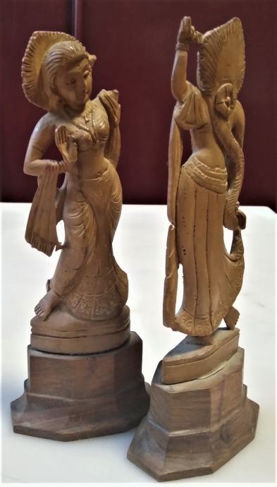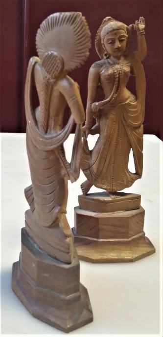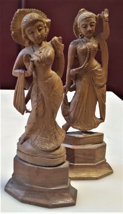 par skulptura u drvu božice Saraswati