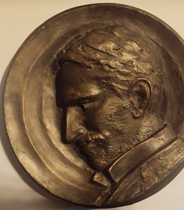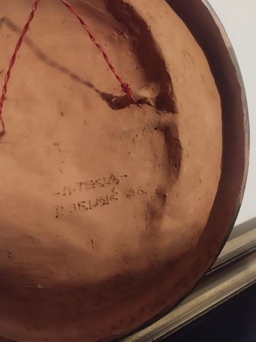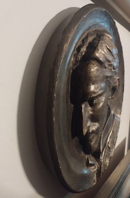 Skulptura/reljef hrvatskog akademskog kipara. Materijal je obojana terakota. Promjer kruga je 29cm.