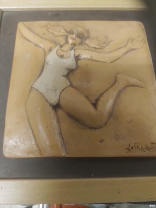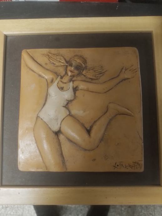 Skulptura plesačice u okviru dimenzija 23x23cm.Izrađeno od pečene gline.
