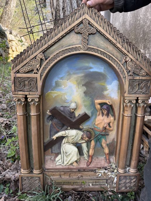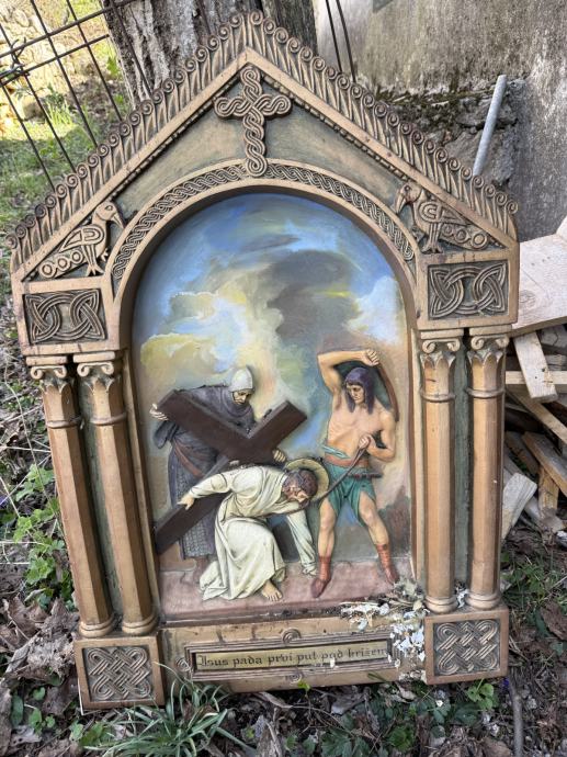 Postaja kriznog puta sa ornamentima, mjere 90*70 cm.