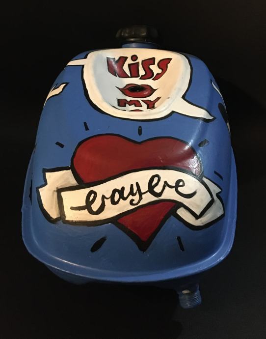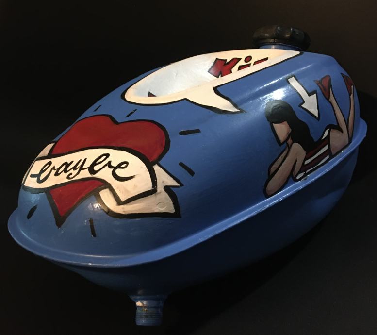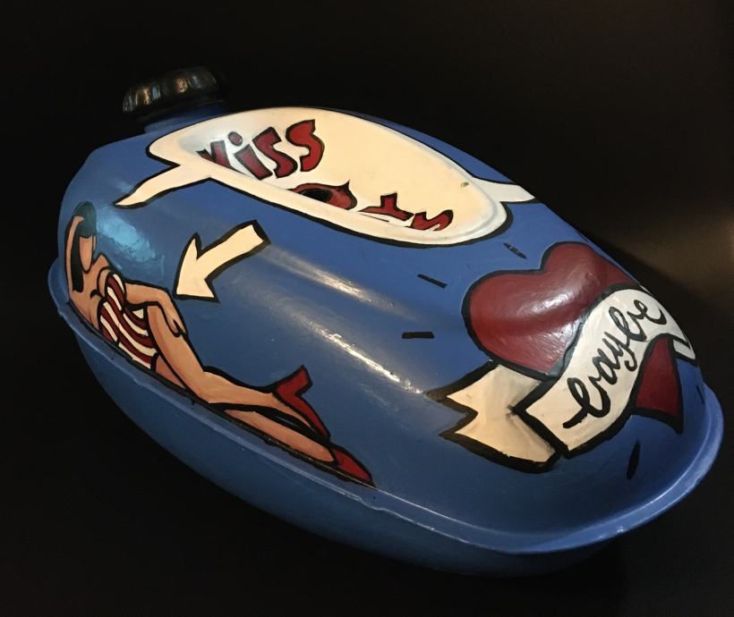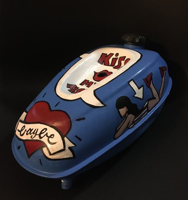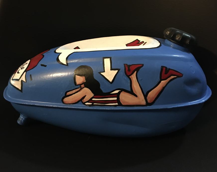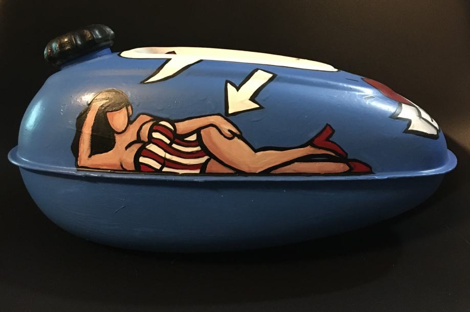 Skulptura jedne od najznačajnijih autorica suvremene hrvatske figuracije. Naslikano na originalnom spremniku motocikla. Dimenzije: visina 17cm, dužina 36cm, širina 20cm. Cijena je fiksna!