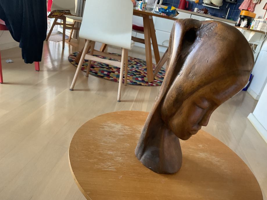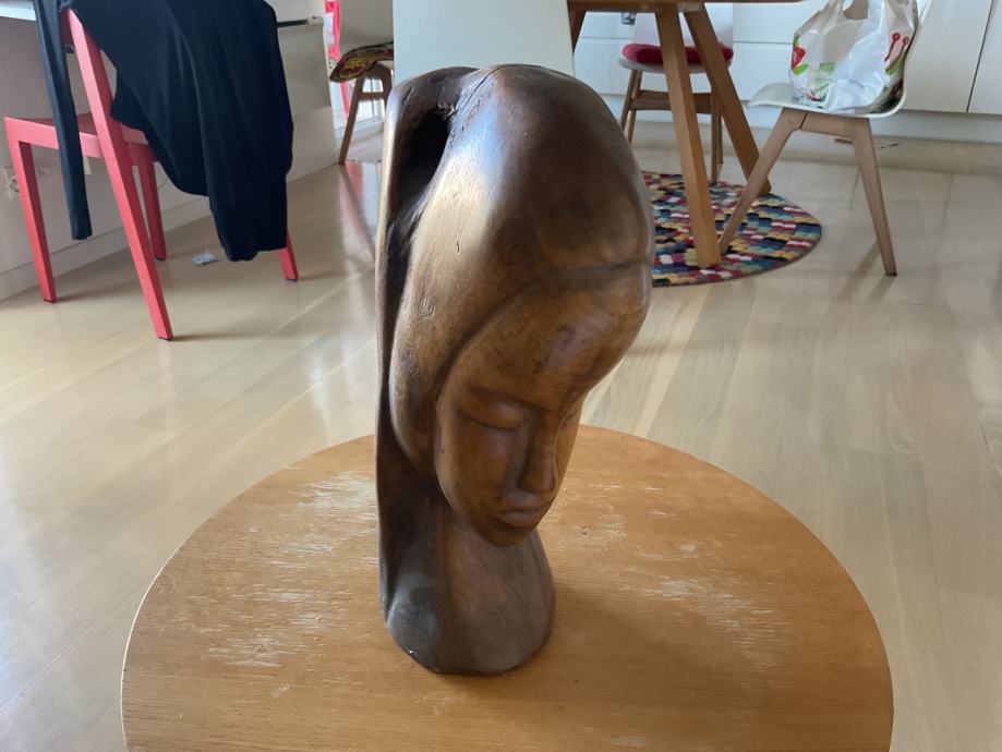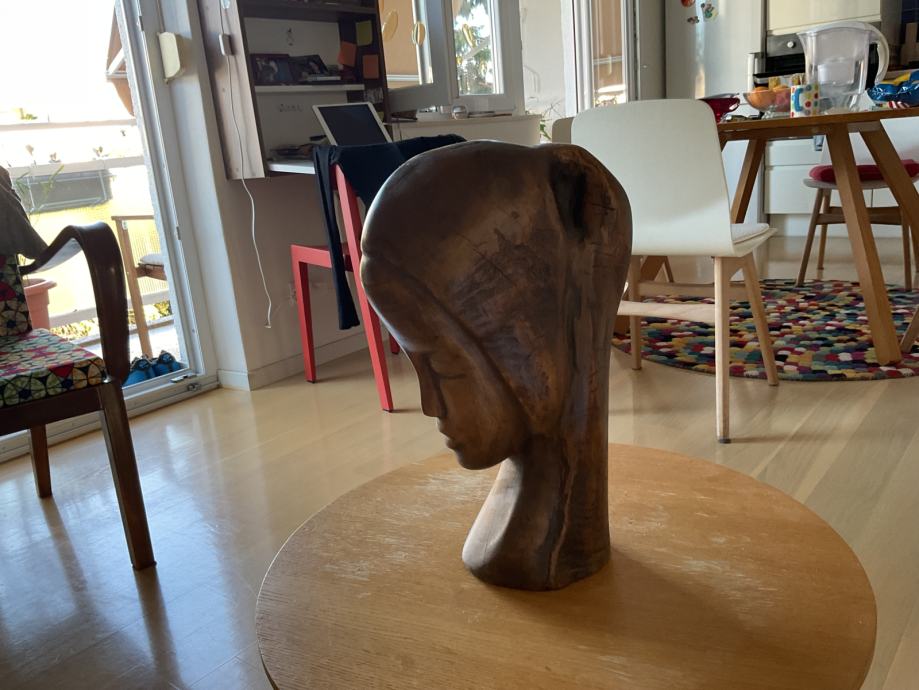 Prodajem drvenu skulpturu s likom crnkinje, mislim da je od maslinovog drva, visine oko 35 cm,