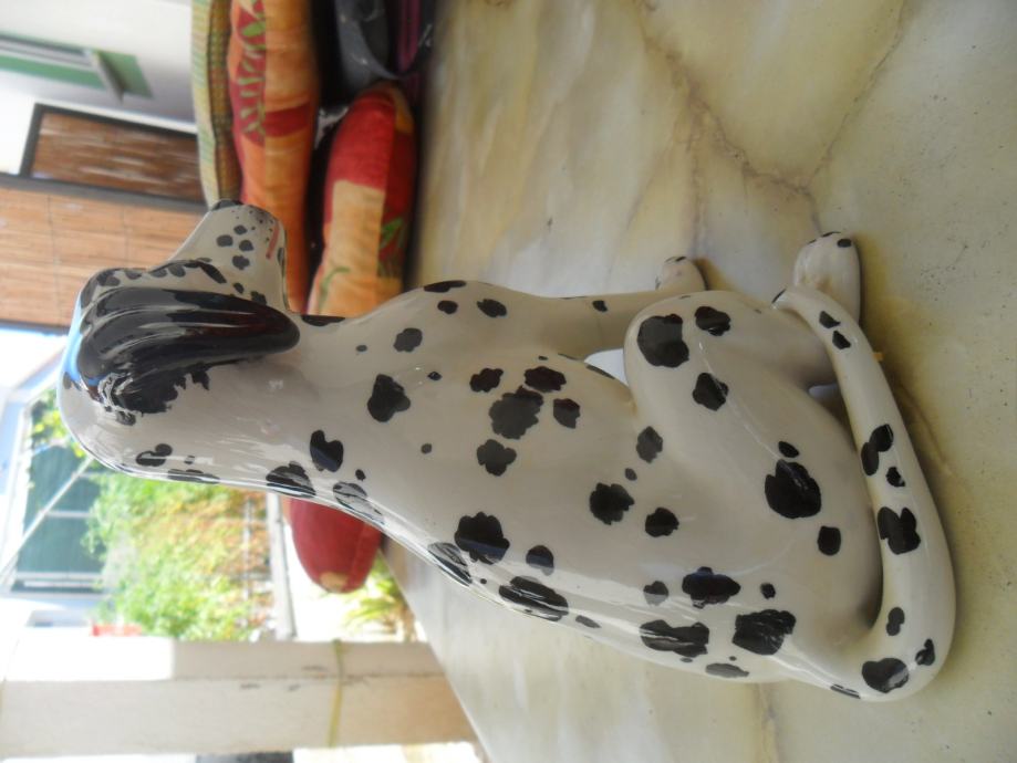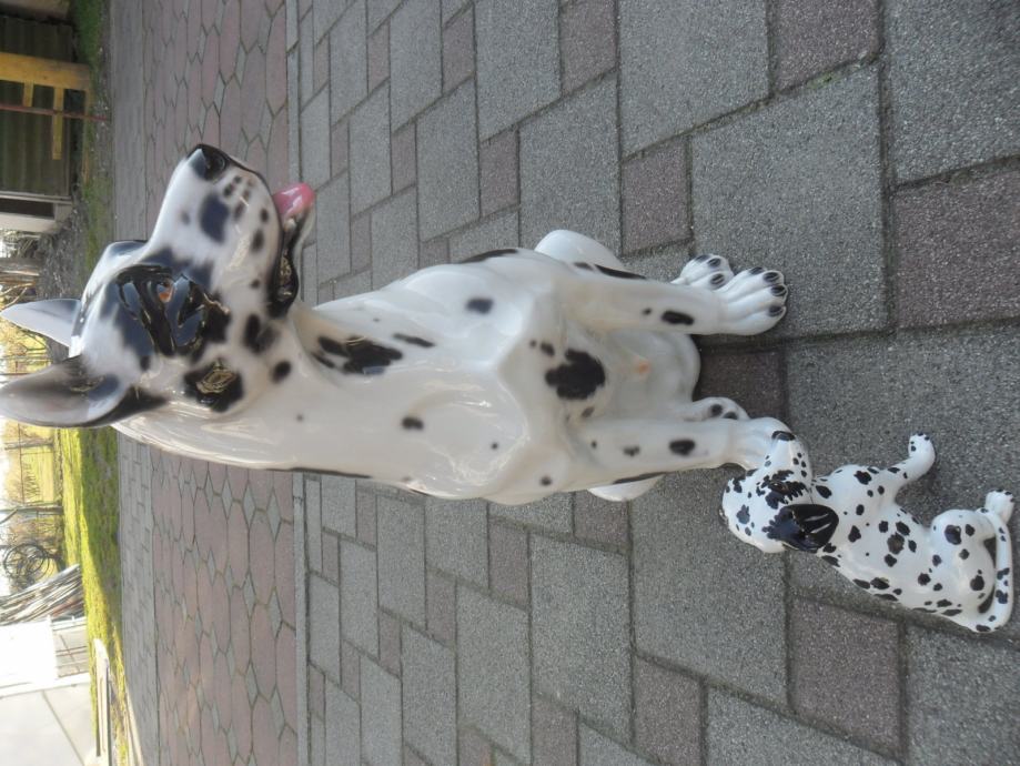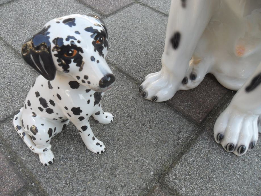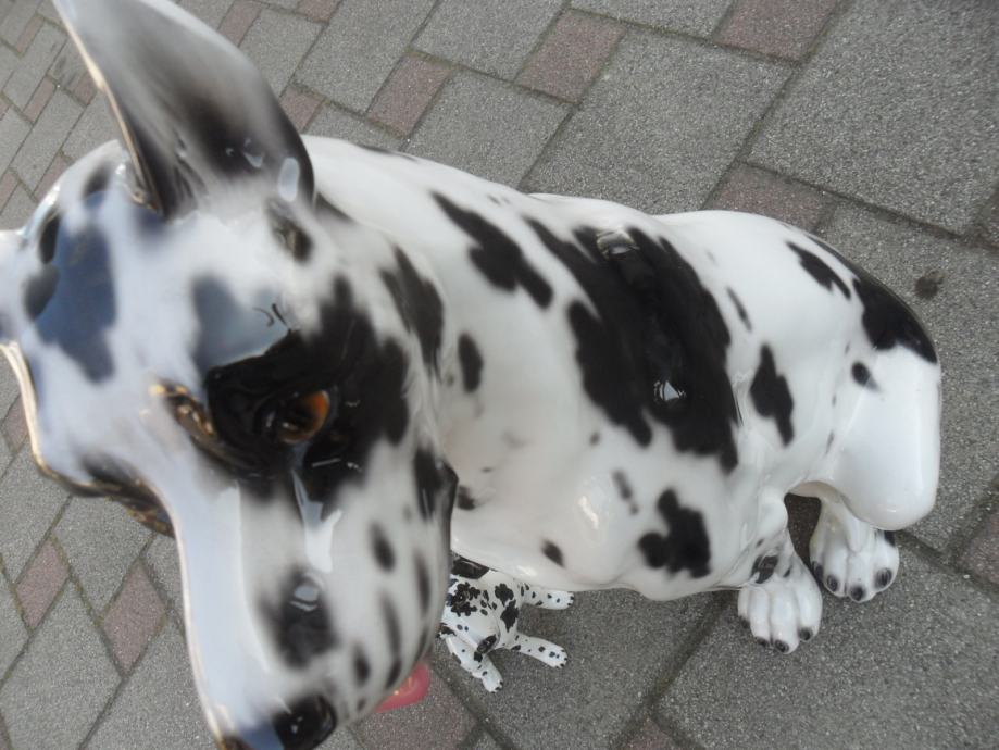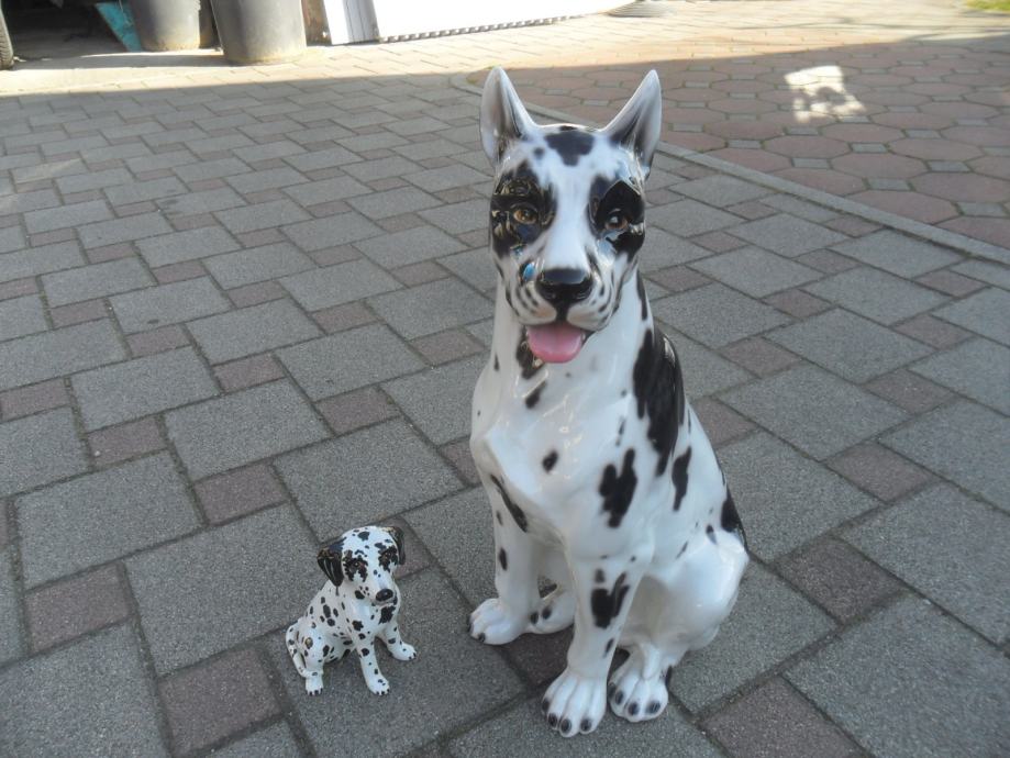 skulptura dalmatinera od prave keramike(manji lijevo je visine 17cm, je prodan), dimenzije velike(argetinska doga bez oštečenja) su....visina je 55cm,,širina sa svih strana je 25-30 cm.