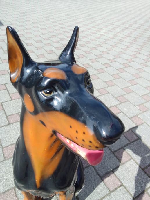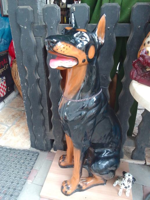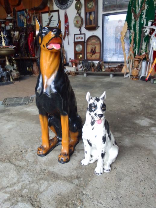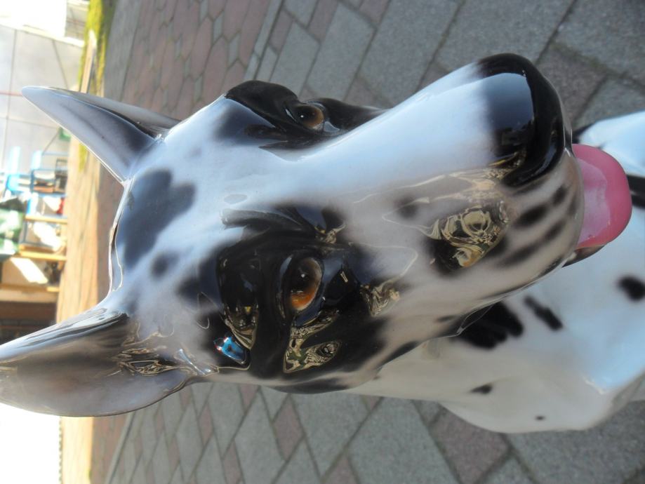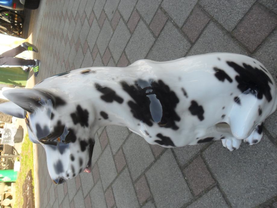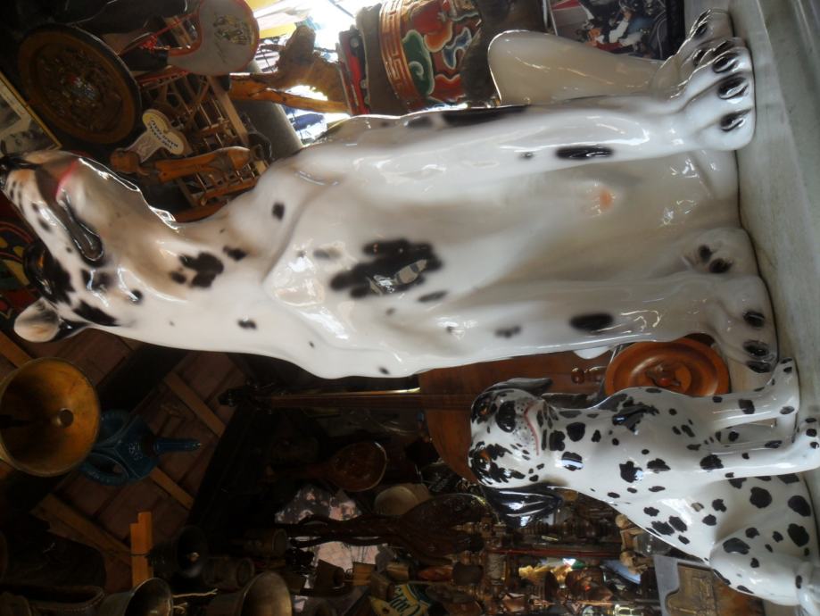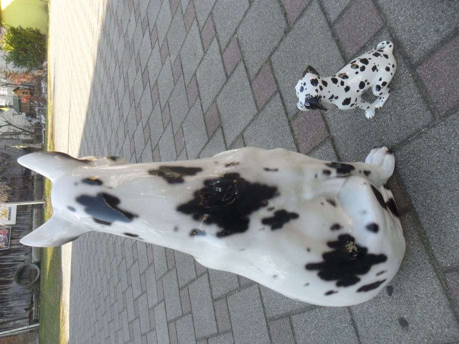 skulptura dalmatinera od prave keramike(manji lijevo je visine 17cm, je prodan), dimenzije velike(argetinska doga bez oštečenja) su....visina je 55cm,,širina sa svih strana je 25-30 cm.