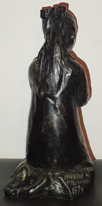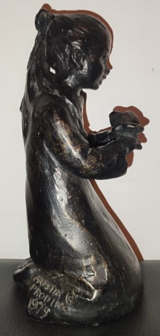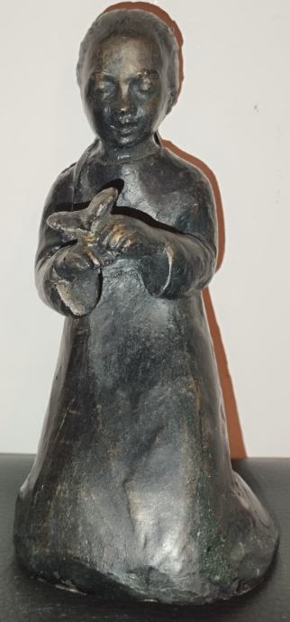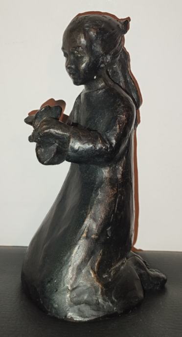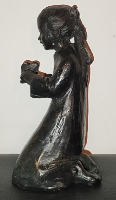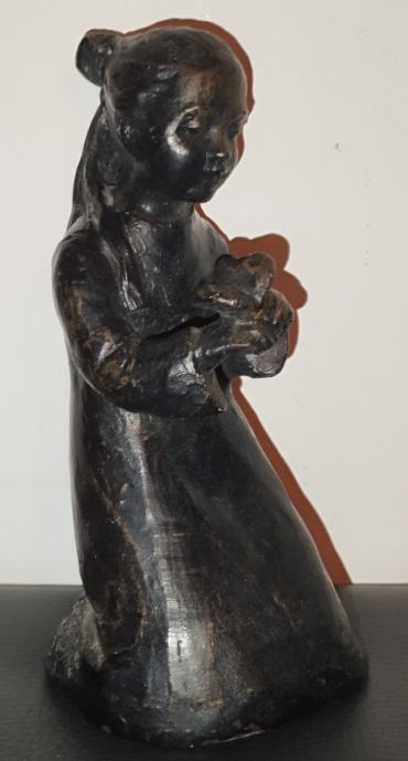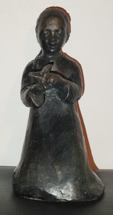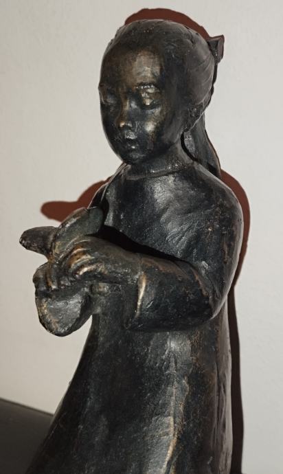 Skulptura, Djevojčica s leptirom, nepoznati autor. Materijal je obojani gips. Visina 17cm.