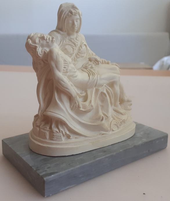 skulptura Pieta na mramornom postamentu