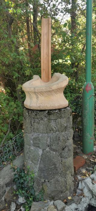 An unfinished wooden sculpture of an outdoor toilet that the buyer should take to the author for signature by carving, and upon request also for completion. To that extent, the advertised price is the price of the current state, which does not include the price of the author's further work, which is agreed upon by the buyer with the author. The identity of the academic sculptor upon payment.