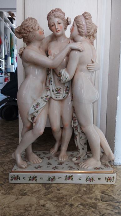 Skulptura na slici je "Tri gracije" proizvođača Katzhütte iz Njemačke, izrađena između 1914. i 1945. godine.