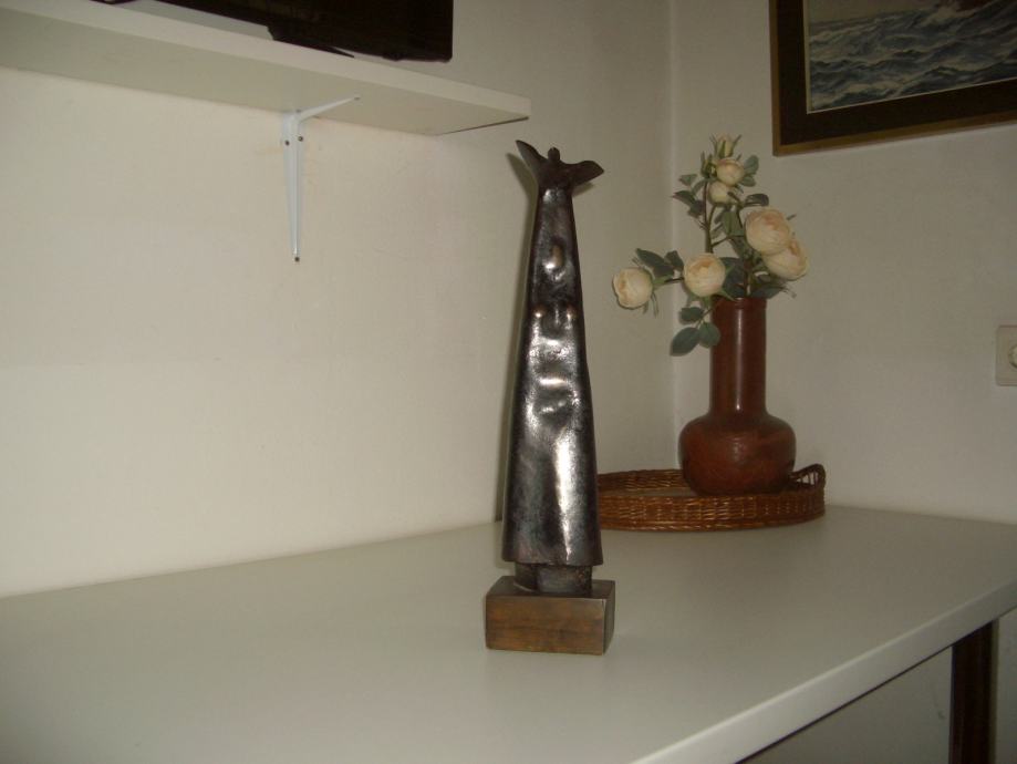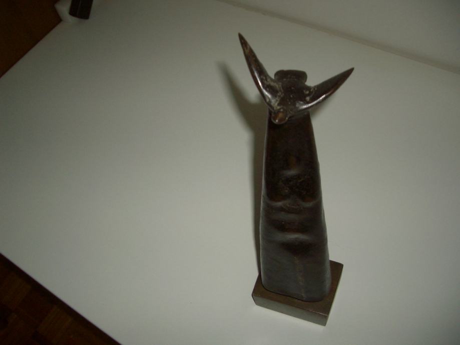 JAKO STARA SKUPTURA, BRONCA -drveno postolje, 50 cm. NAVODNO POZNATI AUTOR ?