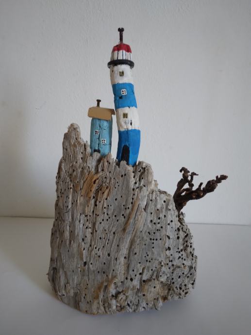 Svjetionik je nastao od komada naplavina nađenih na obali mora i uz dodatak mašte, ukrasiti će svaki prostor.Dimenzije su 17×25 cm.