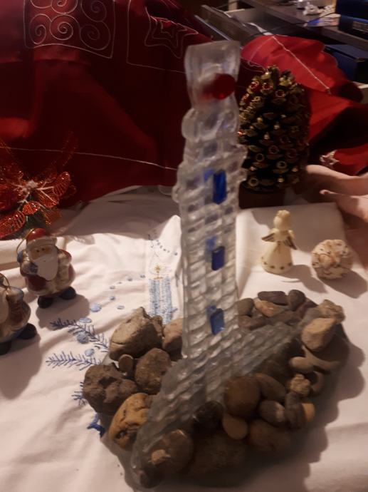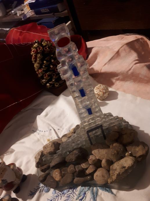 Umjetničko djelo u savršenom stanju. SVJETIONIK je napravljen od morskog kamenja i stakla. Potpis umjetnika bijelom bojom je na kamenu.