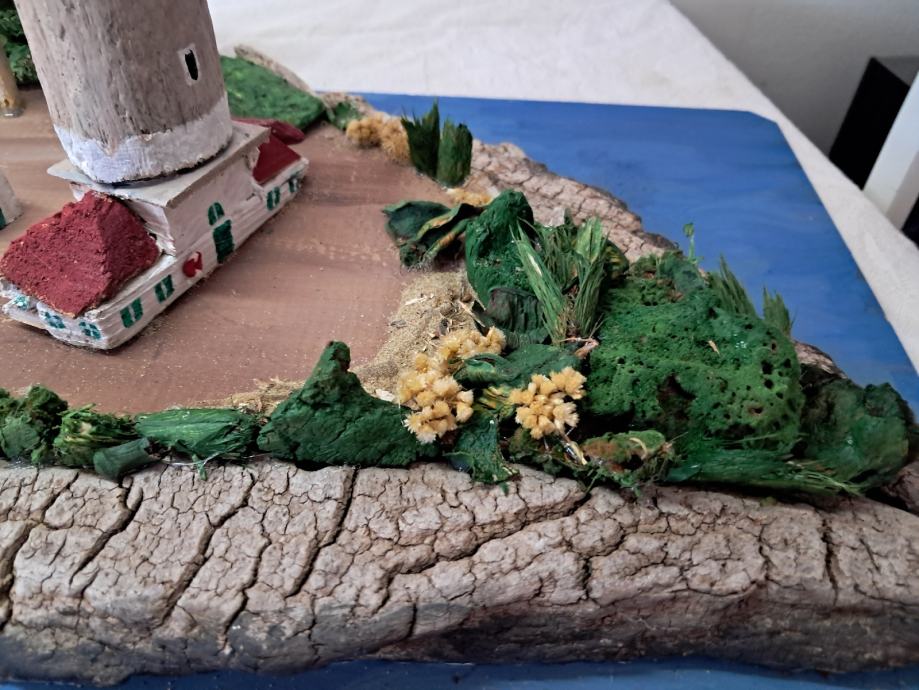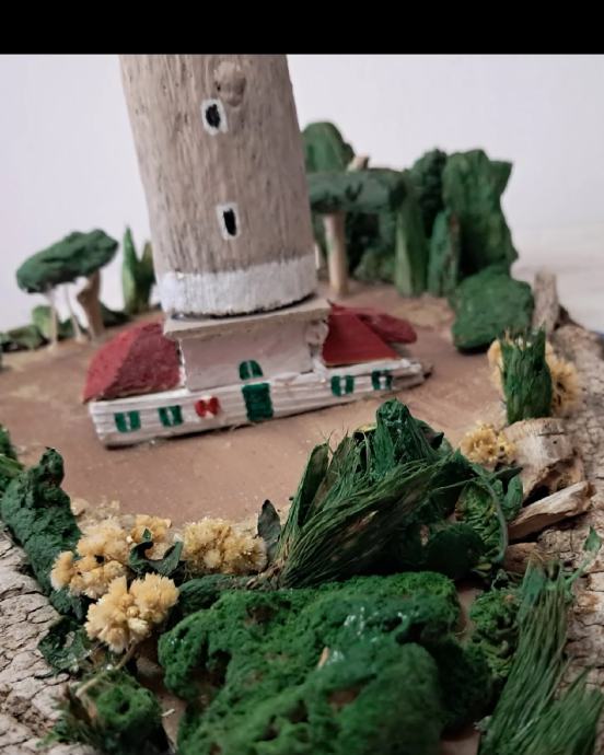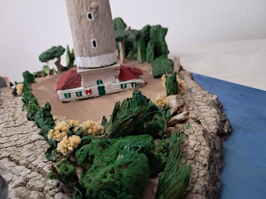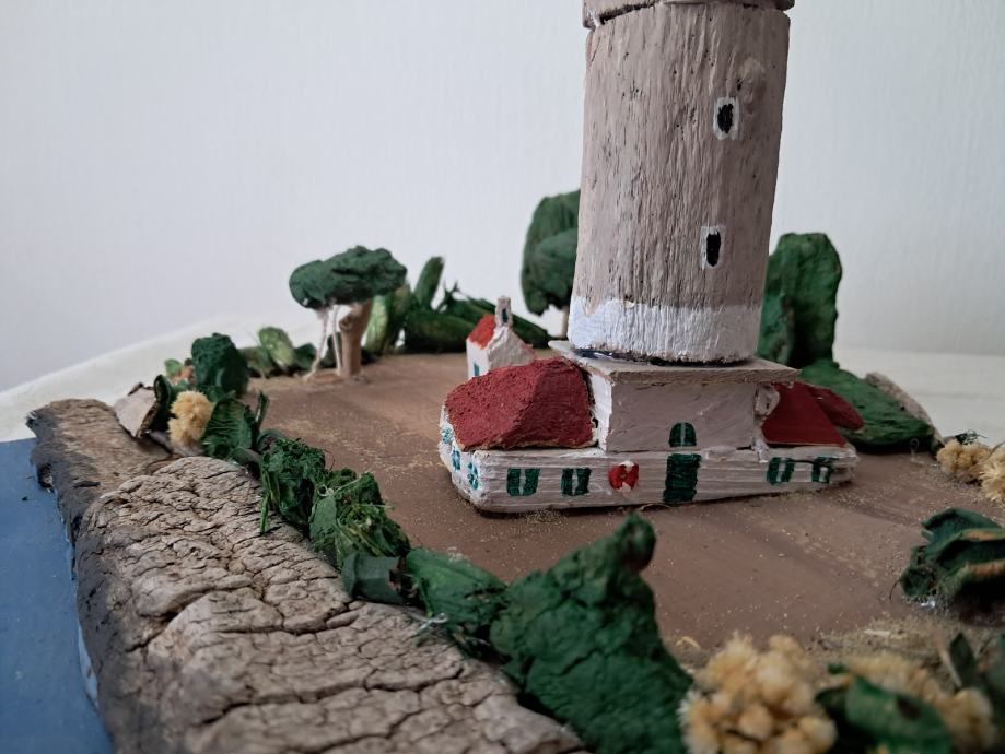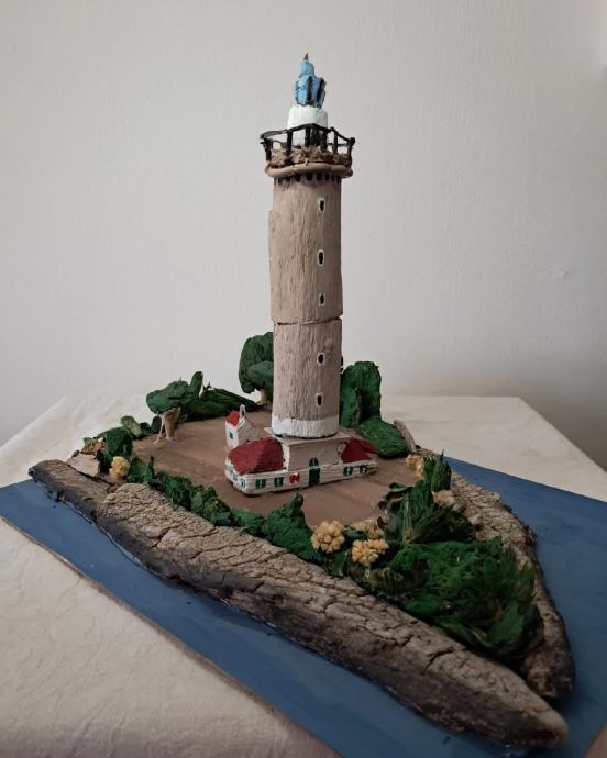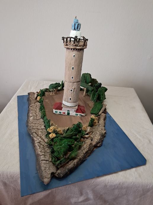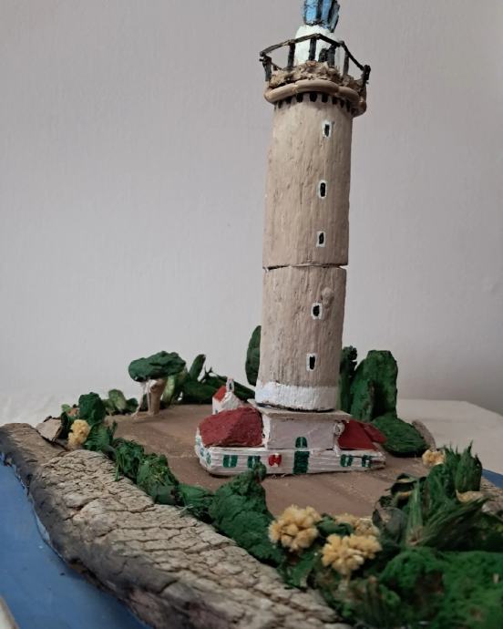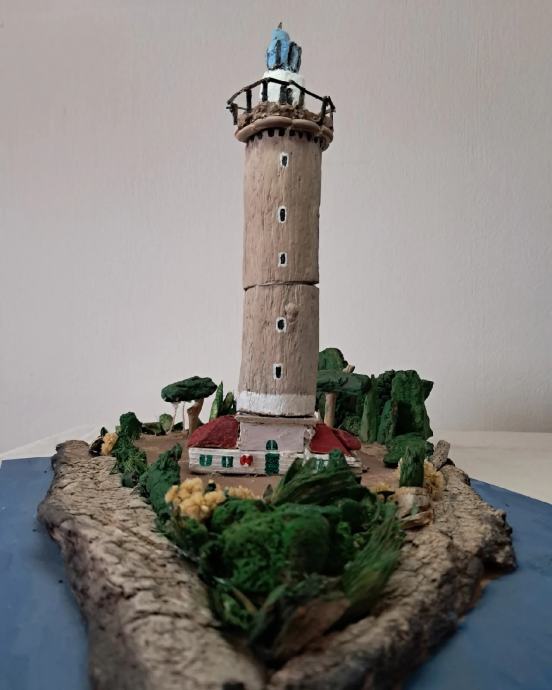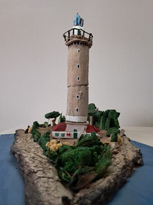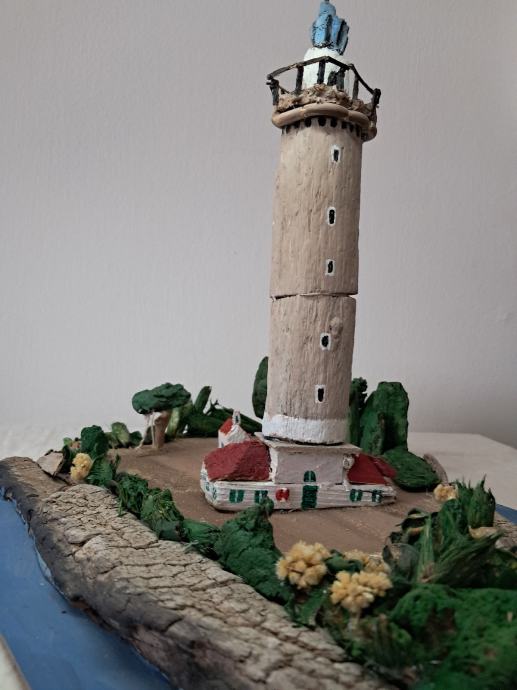 Svjetionik "Veli rat", nastao je po uzoru na najviši svjetionik na Jadranu na Dugom otoku.Svjetionik je nastao od morskih naplavina .Dimenzije su širina 30 ,visina 40 cm.
