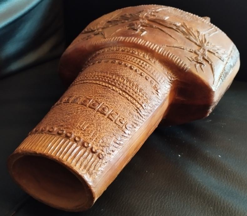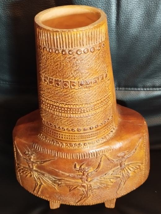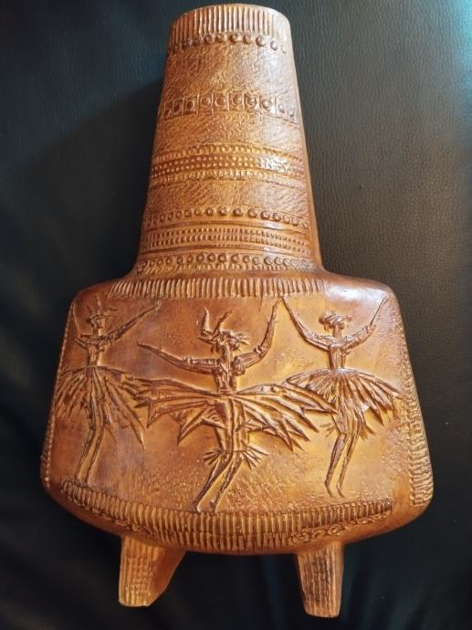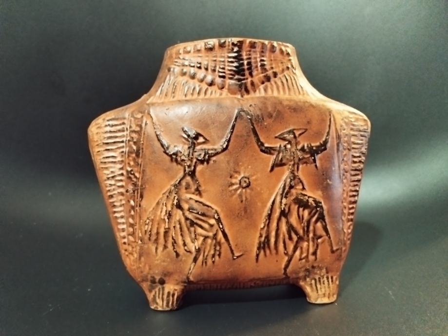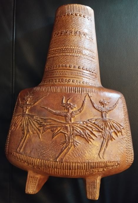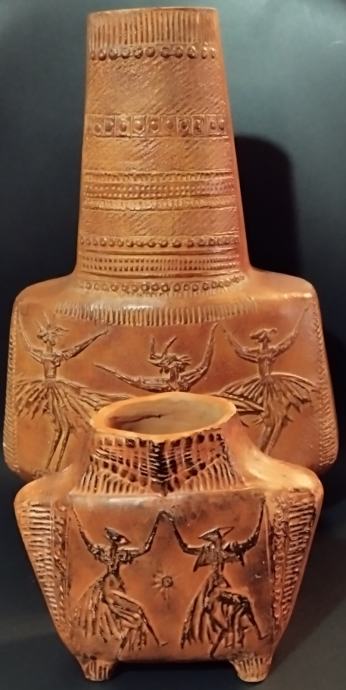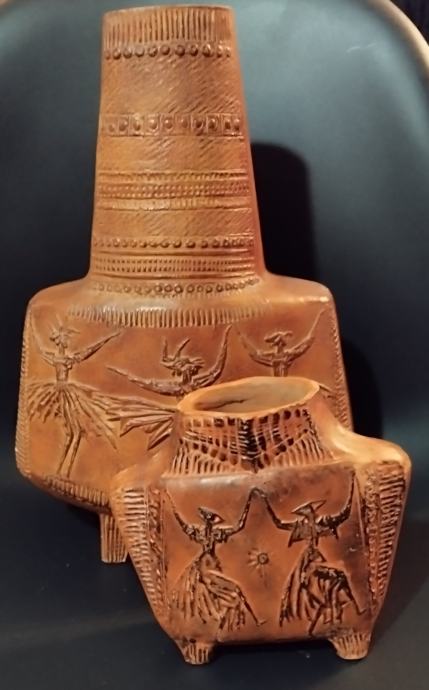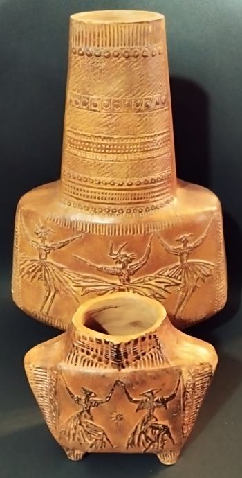 Umjetnička posuda - vaza od terakote akademskog kipara Tomislava Ostoje. Visina veće posude 37cm, širina 25cm; visina manje 15cm a širina 17cm