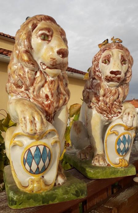 Ukrasni keramički lavovi (lijevi i desni). Visine 35 cm. Telefon 098 913 92 92