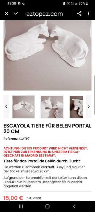 Komadno za po 4,50€, minimum su 2 figure po izboru, npr. veliki magarac + kravica za božićne jaslice. Za više od pet komada 10% popust.