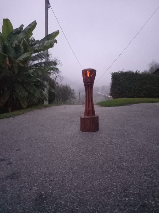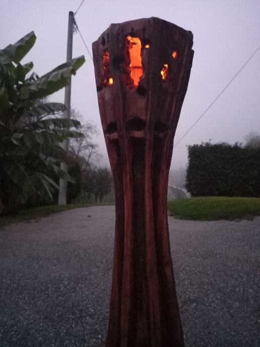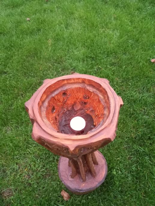Prošireni dio na vrhu ima udubljenje s poklopcem u koje se može stavit svijeća i dobiti svjetlosni efekt.