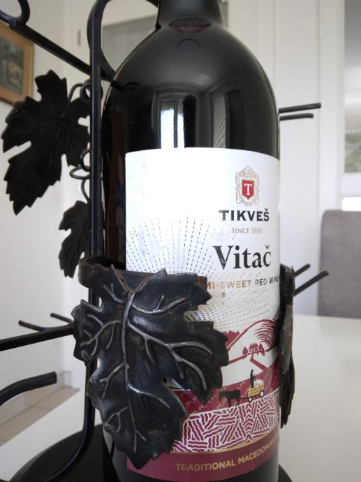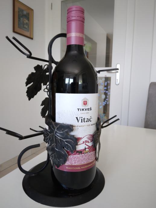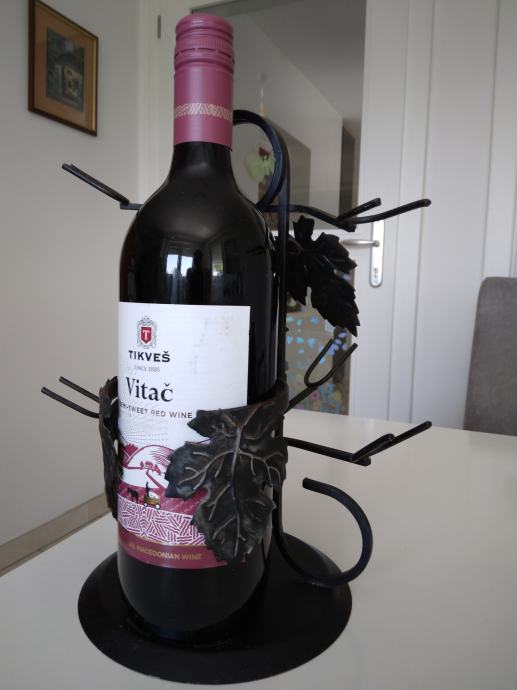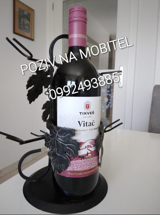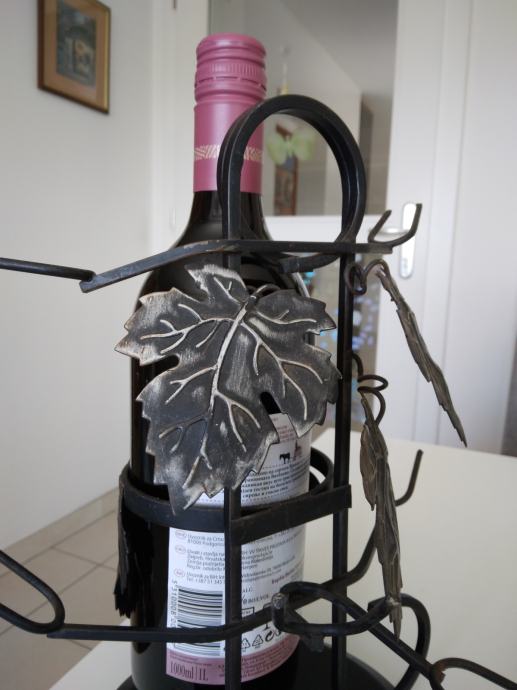 Željezni veliki kovani stalak za butelju - bocu vina. Na fotografiji je veliki željezni stalak koji se prodaje.