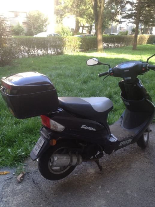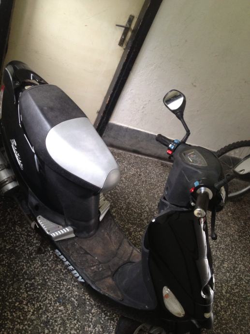 Prodajem rabljeni skuter 49ccm, crni, sačuvan, prijeđeno 3450 kilometara i 31.03.2015 obavljen tehnički i registracija. Registriran je za dvije osobe te je plaćeno osiguranje za vozača i putnika.