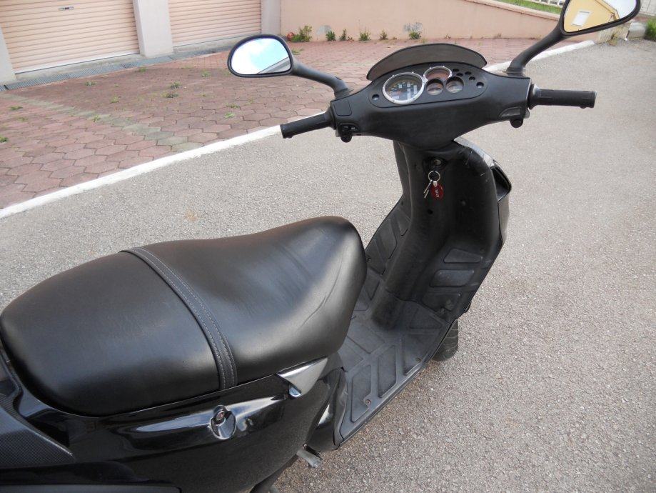 Skuter je u jako dobrom stanju, tehnički ispravan, registriran do 10/2017. Mehanika i elektronika odlični (do sad bez kvarova), manja oštećenja i ogrebotine na plastikama - ništa vitalno i ništa iz vožnje; uglavnom iz garaže. Redovito održavan i uredno vožen bez velikih opterećenja uglavnom na manje relacije (5-10km) isključivo u ljetnim mjesecima. Zimi redovito garažiran. Uvijek lijevana kvalitetna goriva, ulja, rashladne i ostale tekućine. Periodično servisiran i održavan po propisima kod ovlaštenih servisera do 10.000 km, nakon toga uglavnom privatno. Trenutna kilometraža 23000. Prije zadnjeg tehničkog pregleda stavljeni novi dijelovi: baterija, kočione pločice, pogonski remen, mikro remen, valjčići, žarulje, dosta rezervnih dijelova poklanjam... Cijena po dogovoru, moguće zamjene.