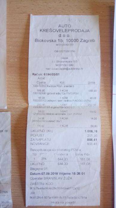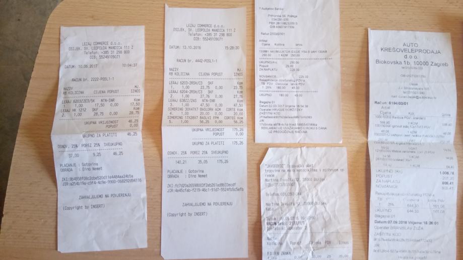 Za sve navedene promijenjene dijelove imam racune.