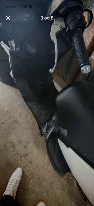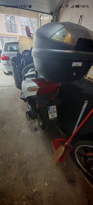 Skuter je skroz ispravan i trenutno stoji u garaži, registriran je do 10/2025, gume su odlične i dobro drže (kupljene prije 3 god), ima elektronsku blokadu, a max brzina je 70km/h, jako udoban za vožnju, dolazi sa Kappa koferom, ima originalnih 12700km, drugi sam vlasnik i prijenos je obvezan.