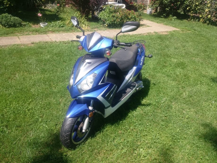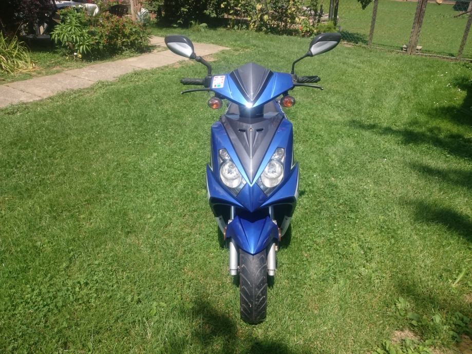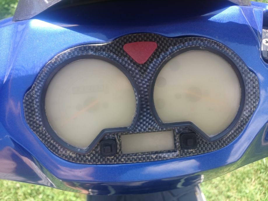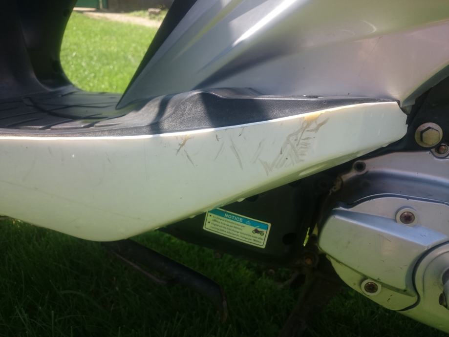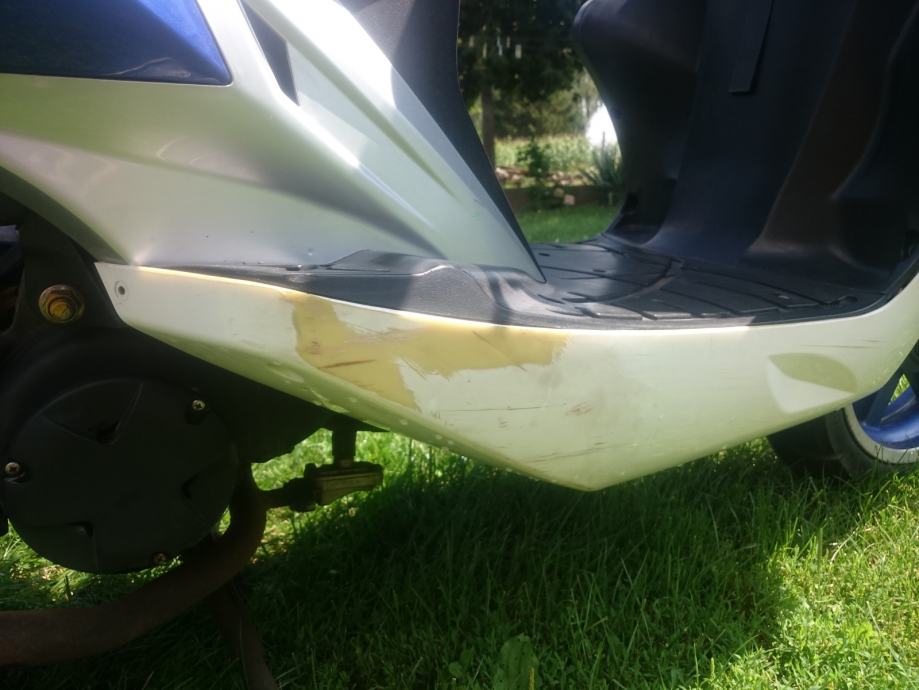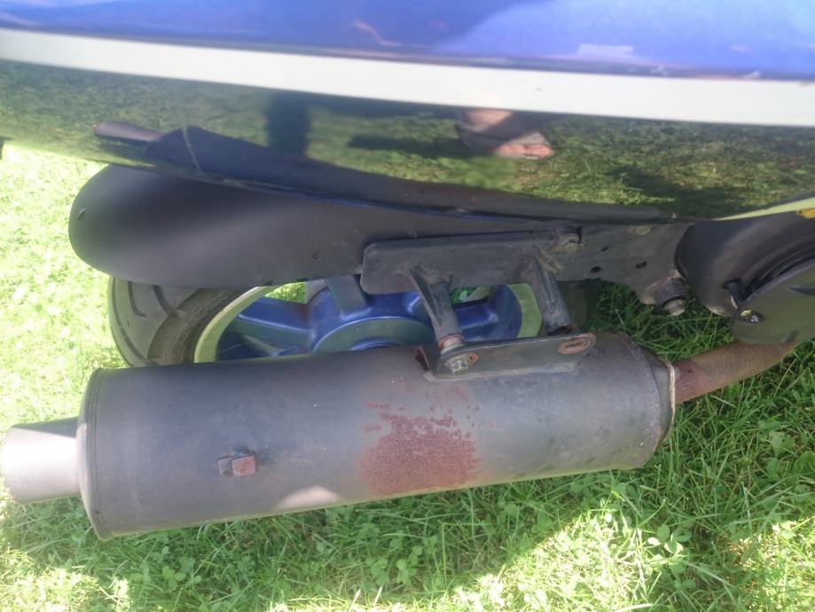 2016. stavljen novi klip i cilindar, stari je bio već poderan od toliko km, na slici se vidi da zbog toga auspuh ne sjeda na obadvije rupe ali to nije nikakav problem. Dolje malo izgreban od jednog pada. Sve ostalo top, pali i vozi.