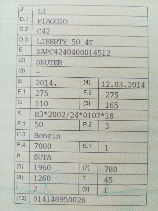 Piaggio Liberty 50 4t, 2014 god.