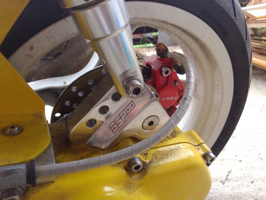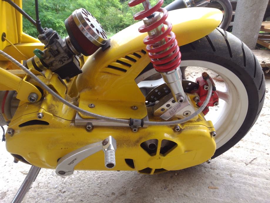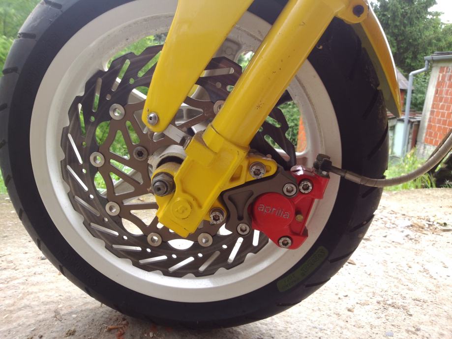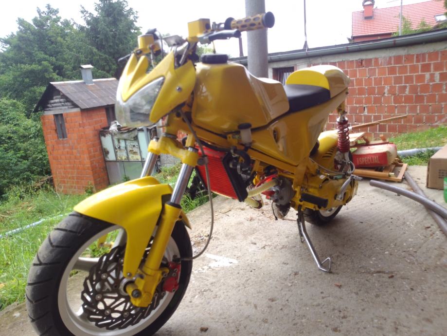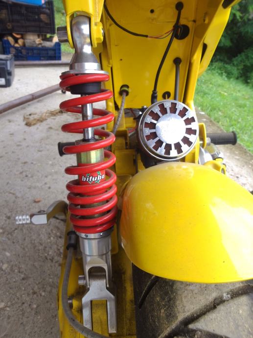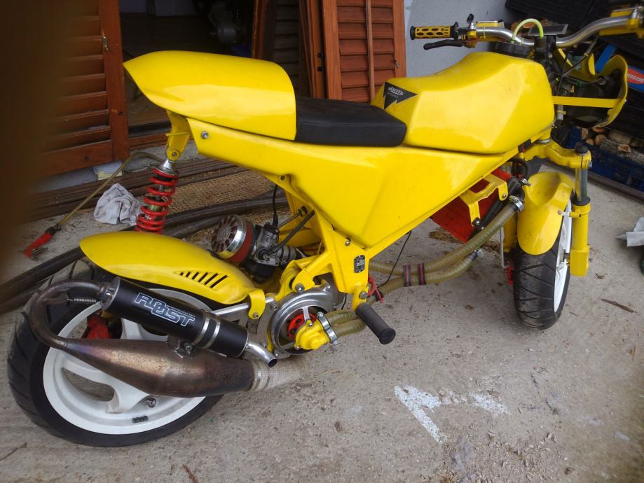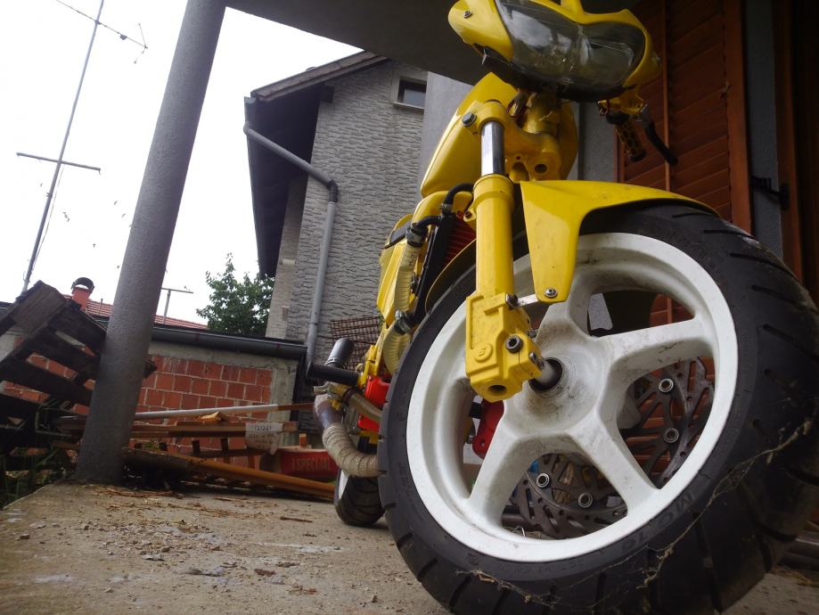 yamaha aerox felge (plastificirane u bijelo) sava mc16 racing soft, vilice i trokut aprilia sr 50 (obnovljene i plastificirane), Stage 6 disk prednji 240 mm s nosačem za sr 50, prednja čeljust sr50, pleteni lajtunzi, pumpice kočnica brembo aerox, volan downhill, prednji far i maska aerox, gas ggriff ručka tomaselli, ručke progrip, pr blatobran aerox, rama rezervoar i bočne plastike tomos bt50, prozirna crijeva za vodu, kiler sr50, cilindar top performance tpr, radilica malossi sport, variomat, remen i veće stražnje polutke malossi overrange, produženje getribe primar osovina malossi, originalna struja, ngk racing cable s lulicom u komadu, dellorto phbl 24, usisna lamela mhr malossi, roost rezonantni auspuh ručni rad slovenija, delta mhr kuplung, mhr malossi zvono s pojačanjem i hladnjakom, kiesler stražnji blatobran, zd disk braking i brembo čeljust aerox, stražnji amortizer bitubo,...