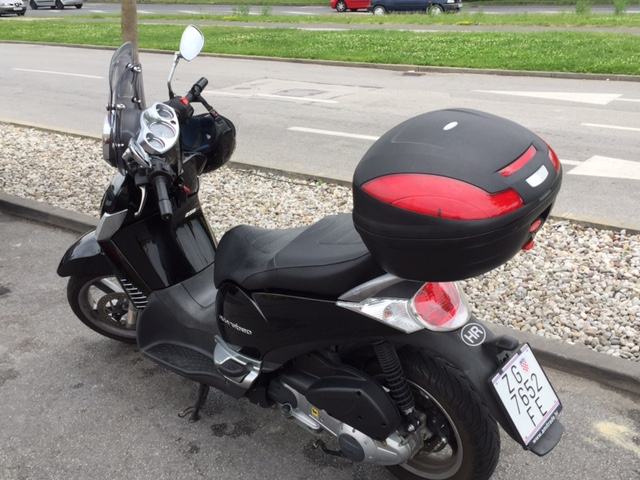 Skuter je izuzetno upravljiv u gradskoj vožnji, veliki prednji kotač - 16", veliki prtljažnji prostor ispod sjedišta gdje stane kaciga, plus veliki kofer. Naravno spreman je i sposoban za dulje ture zbog dovoljne snage motora.