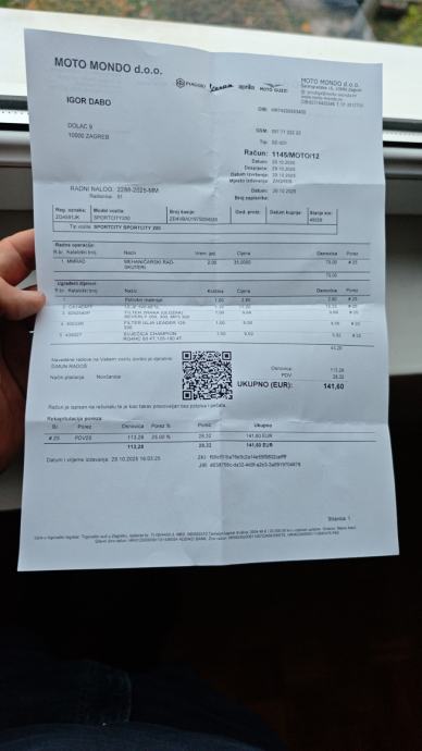 • Zadnji servis: 29.10.2025. Moto Mondo 49.328km - 141.60€