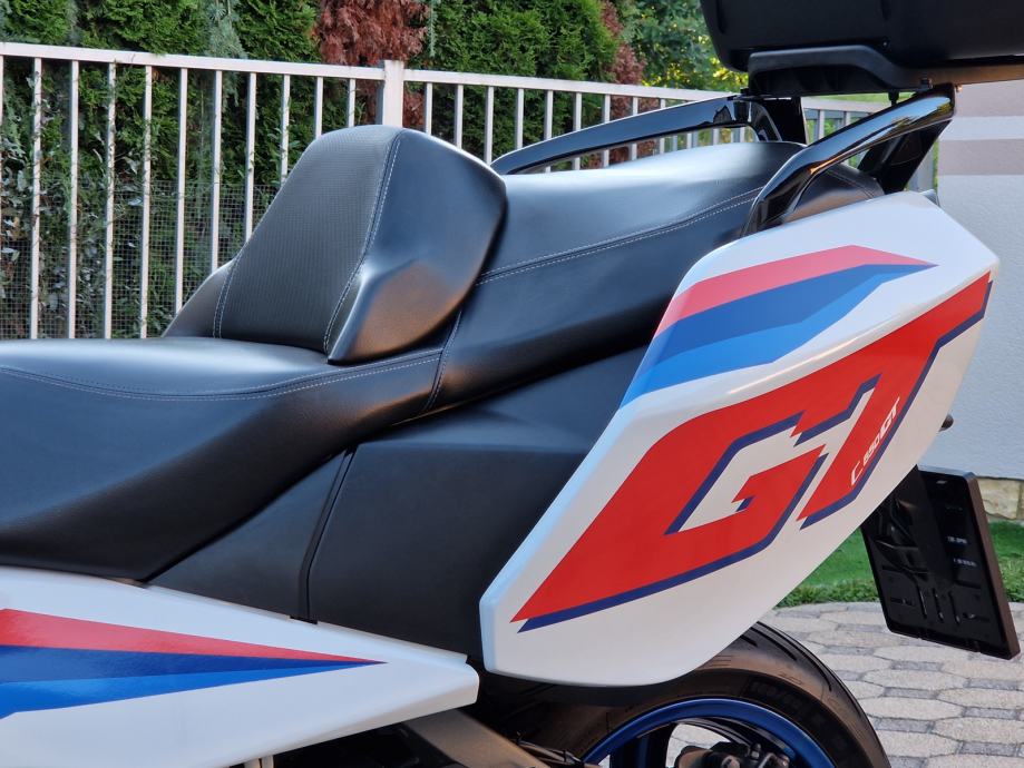 ODLIČNIH JE VOZNIH OSOBINA, MAKSIMALNO UTEGNUTOG OVJESA, SKUTER SA JEDNOM OD NAJBOLJILH CIKLISTIKA MAXI SKUTERA SA SOLIDNIM PAKETOM DODATNE OPREME OD KOJE JE ZA IZDVOJITI ABS SUSTAV, PUTNO.RAČUNALO, LED SVIJETLO, UREĐAJ PROTIV PROKLIZAVANJA, ELEKTRIČNO PODEŠAVANJE VIZIRA, GRIJANJE RUČKI VOZAČA,GRIJANJE SJEDALA VOZAČA I SUVOZAČA, CENTRALNI PLUS BOČNI NOGAR, STRAŽNJI KOFER U BOJI KAROSERIJE SKUTERA - TE TAKAV PAKET OPREME SAMU VOŽNJU ČINI PUNO UGODNIJOM, SIGURNIJOM I OPUŠTENIJOM...