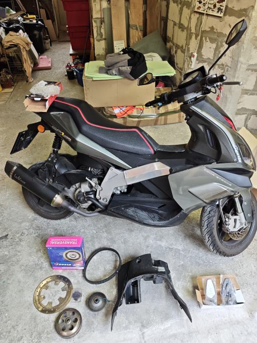 Leovince,akumulator,kvačilo,nosač tablice,Costa variomat i remen,nove plastike+štop,Pirelli gume,puž sata,ležaj volana,i prošiven kožni sic!