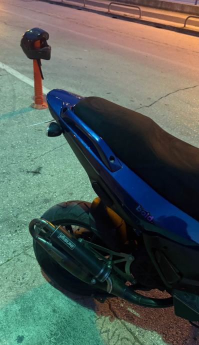 Uz motor se dobije nosac tablice, retrovizori, bijele oprugice, plava centralna, 4.3g rolnice, airbox, angel eyes, plave pozicije prednje