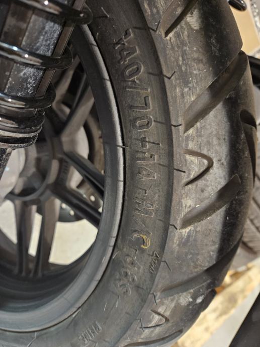 Dodatno kupljen i stavljen veći vizir (naravno uz skuter ide i originalni vizir). Nove gume stavljene prošle godine.
