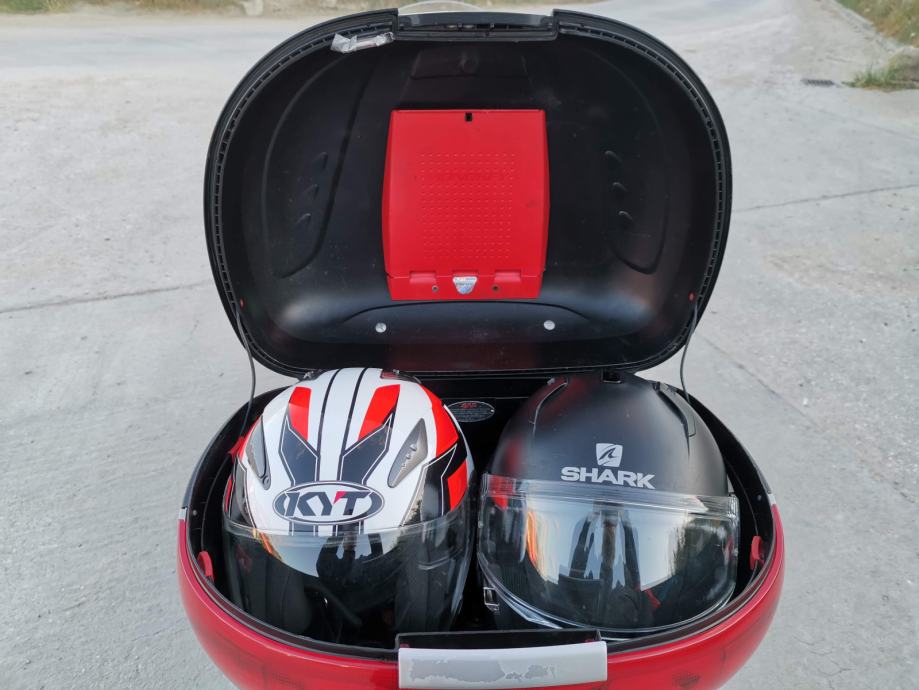 Od opreme ima sve što vozača veseli: sportski auspuh (upisan), grijane ručke, dodatna svjetla, veliki kofer za dvije kacige...i još dosta toga (dodatne nogare/štafne, podizač vizira, zaštita lanca,...)