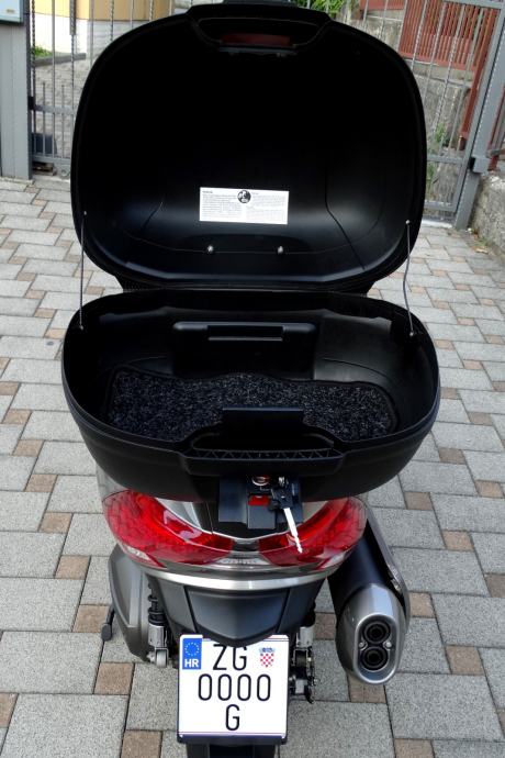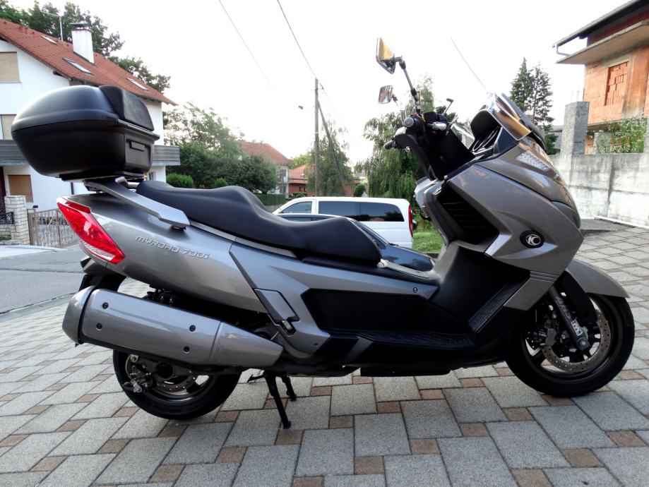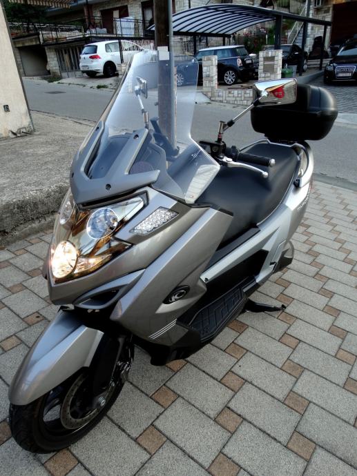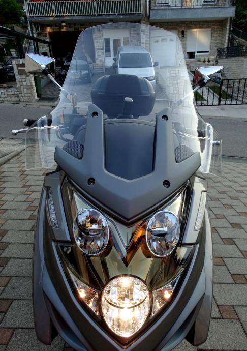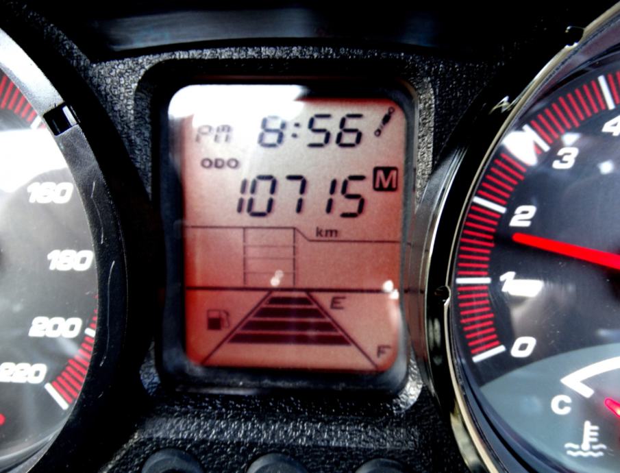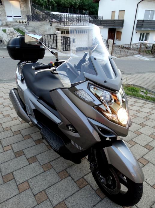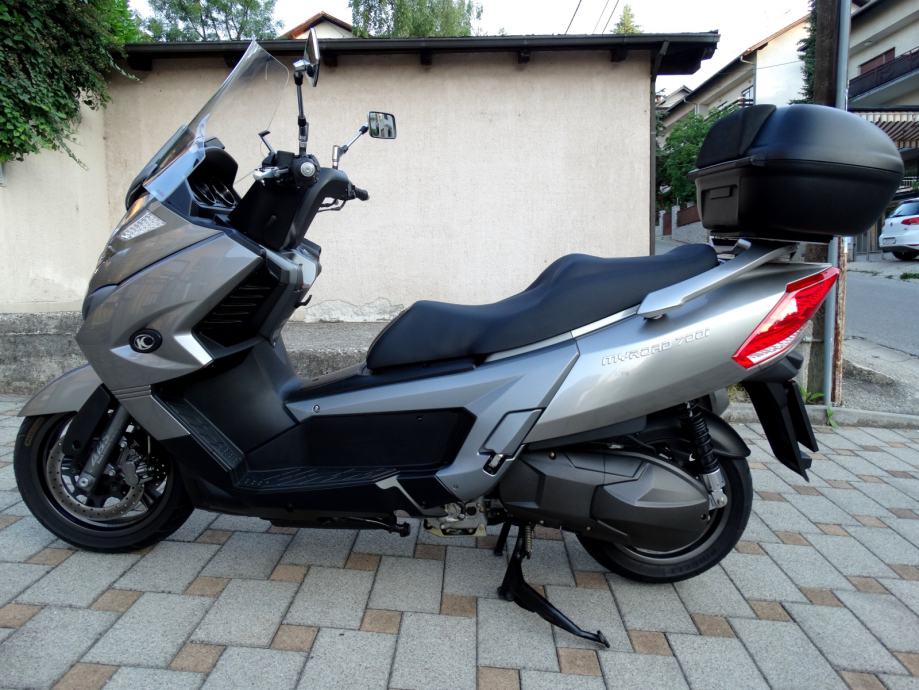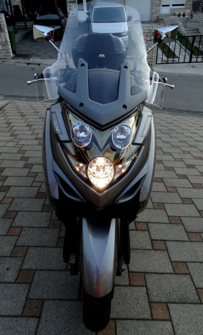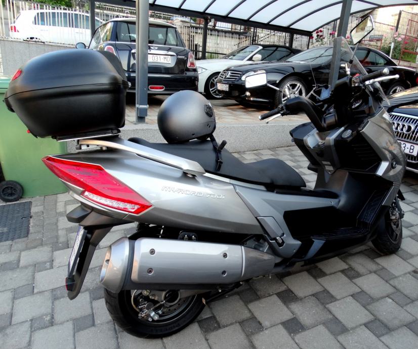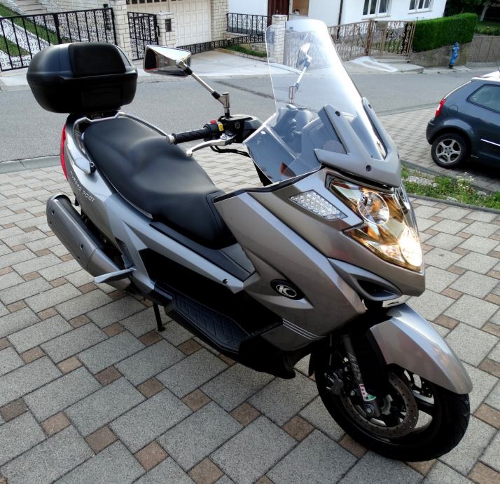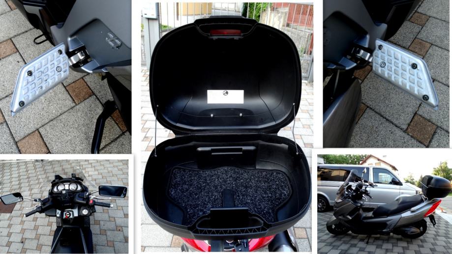 Na 9700 km napravljen je kompletan servis i postavljene su nove gume a za sve navedeno posjedujem račune i popratnu dokumentaciju ovlaštenog servisa. Uz motor dajem dva originalna ključa od motora i od kofera. Motor nikada nije bio u sudaru i ima originalnih 10600 km. Od dodatne opreme ima: ručnu kočnicu, ABS, kofer kapaciteta za dvije kacige, originalan vizir, elektronsko regulirani stražnji ovjes pri čemu vozaču na raspolaganju stoje tri položaja (S za mekani, M za srednji i H za tvrdi ovjes), a mijenjaju se preko tipke smještene na upravljaču, prednje kočnice imaju dva diska promjera 280 mm, dok je straga jedan promjera 260 mm, izvlačenje bočnih držača nogu za suputnika na ručici kod volana, blokadu ključanice protiv krađe. Za bilo kakvu provjeru prilažem broj šasije: RFBV30000C1100185. Ovaj skuter sa svojih stabilnih 292 kg i snagom od skoro 60 ks, te sa 700 ccm i konačnom brzinom od skoro 200 km/h i spremnikom goriva od 15 litara a potrošnjom od 4 do 6 litara (ovisno o vožnji) je doslovno prava cestovna krstarica koja Vas je u svakom trenutku spremna pouzdano i udobno odvesti Vas na bilo koji dio svijeta.
