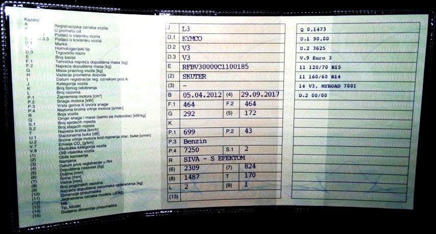 Kymco MYROAD 700i ABS 43kw/59ks. Proizveden: 04/2012. Prvi puta na cesti od 18.03.2015. Registriran do 01.10.2018.