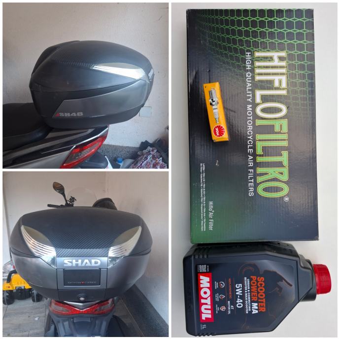 Skuter je redovito servisiran svake godine neovisno o prijeđenim kilometrima, (preko zime u garaži na suhom pokriven ceradom). Nove ručke, akumulator i disk pločice.