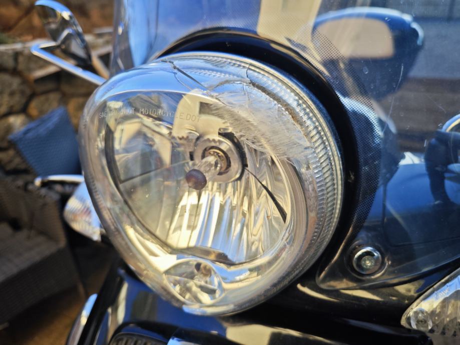 Jedino je vidljivo malo oštećenje na prednjem faru i bočnoj plastici.