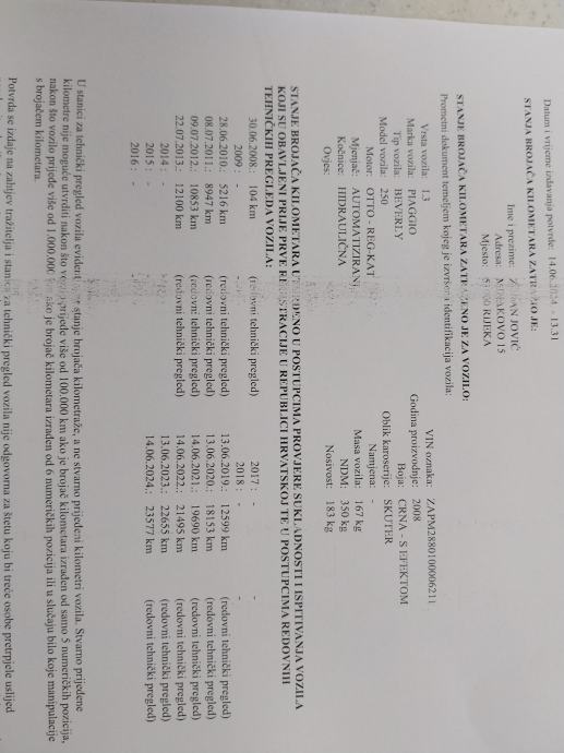 Posjedujem ispis km sa Tehničkog pregleda orginal 24 tkm.