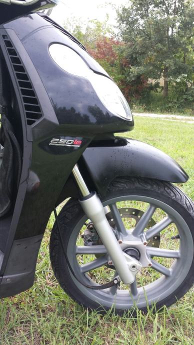 Skuter je jako sličan Beverlyu 250ie, najveća razlika je ravna podnica što je praktično za nekakvu torbu ili slično te je nešto je lakši od njega, samim time i okretniji.