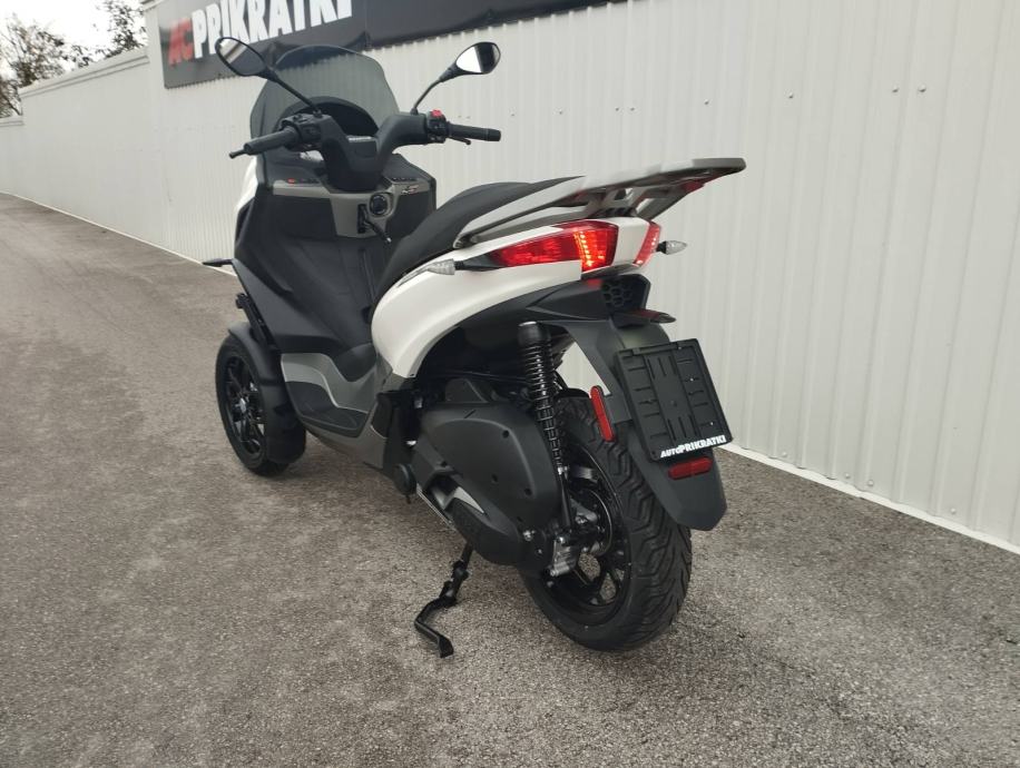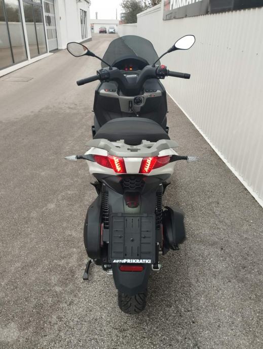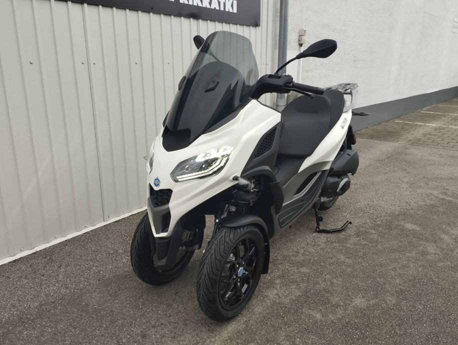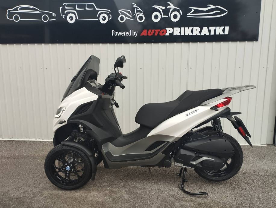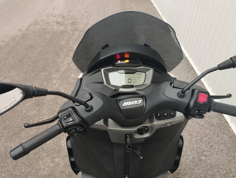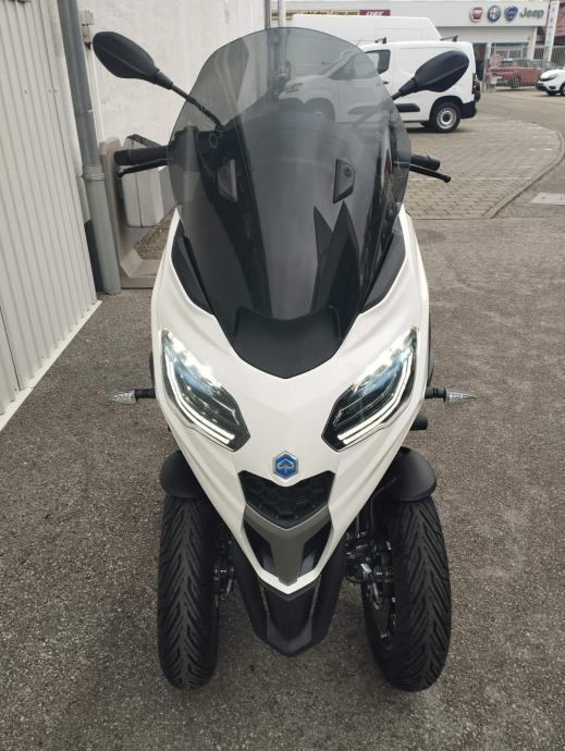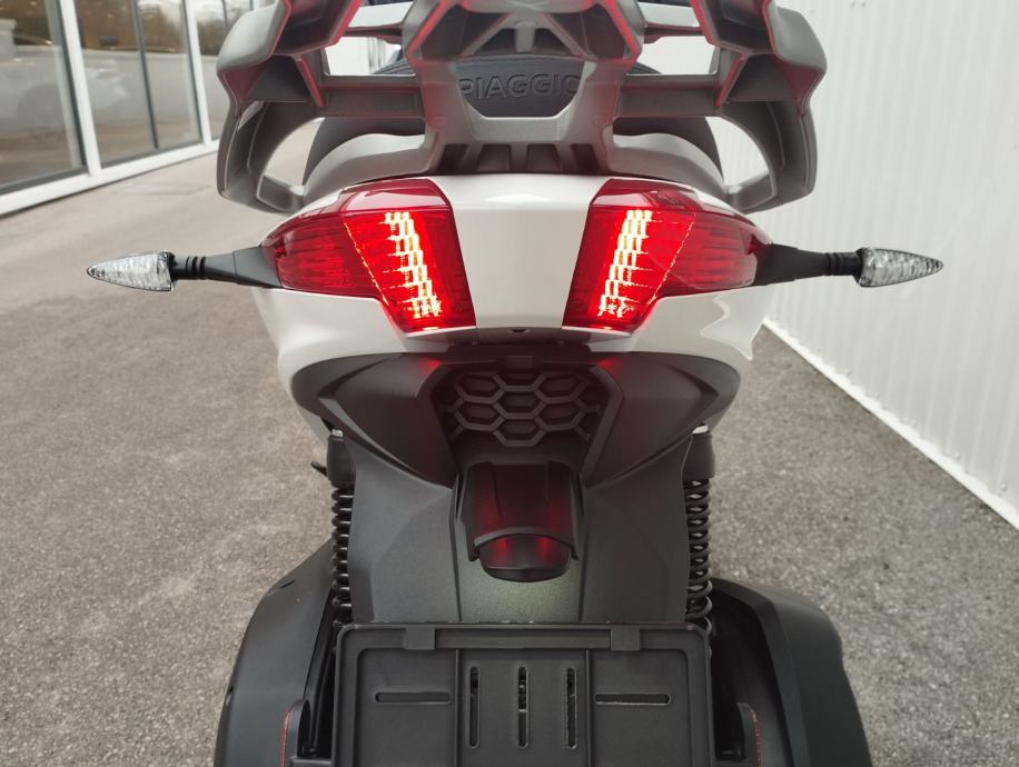 Piaggio MP 310, koji se može voziti s B vozačkom dozvolom za automobile, ostavlja snažan prvi dojam svojim odvažnim, dinamičnim stilom nadahnutim najnovijim trendovima u automobilskom dizajnu. Metalik sivi satenski detalji naglašavaju elegantne linije vozila dok sjedalo sive teksture i kontrastno sivih šavova savršeno odgovara završnoj obradi detalja. Zatamnjeni vjetrobran dolazi s bočnim deflektorima za dodatnu zaštitu i udobnost, a elegantni stražnji kraj upotpunjuje suvremen, elegantan dizajn.