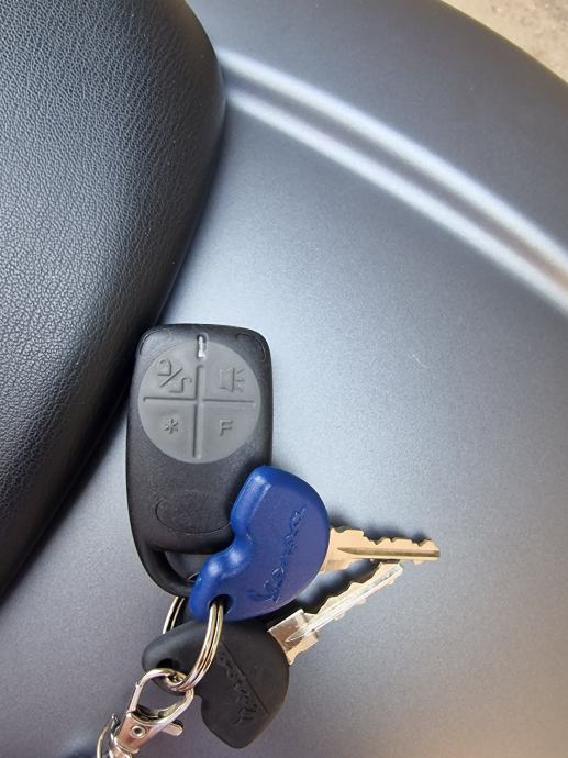 Uz skuter dolazi nosac kofera, kofer i alarm ( sve orginal od vespe )