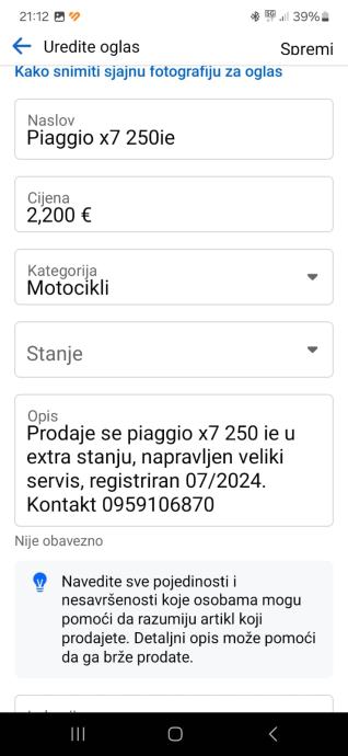 Prodajem rabljeno vozilo: Piaggio x7 250 ie